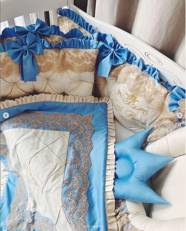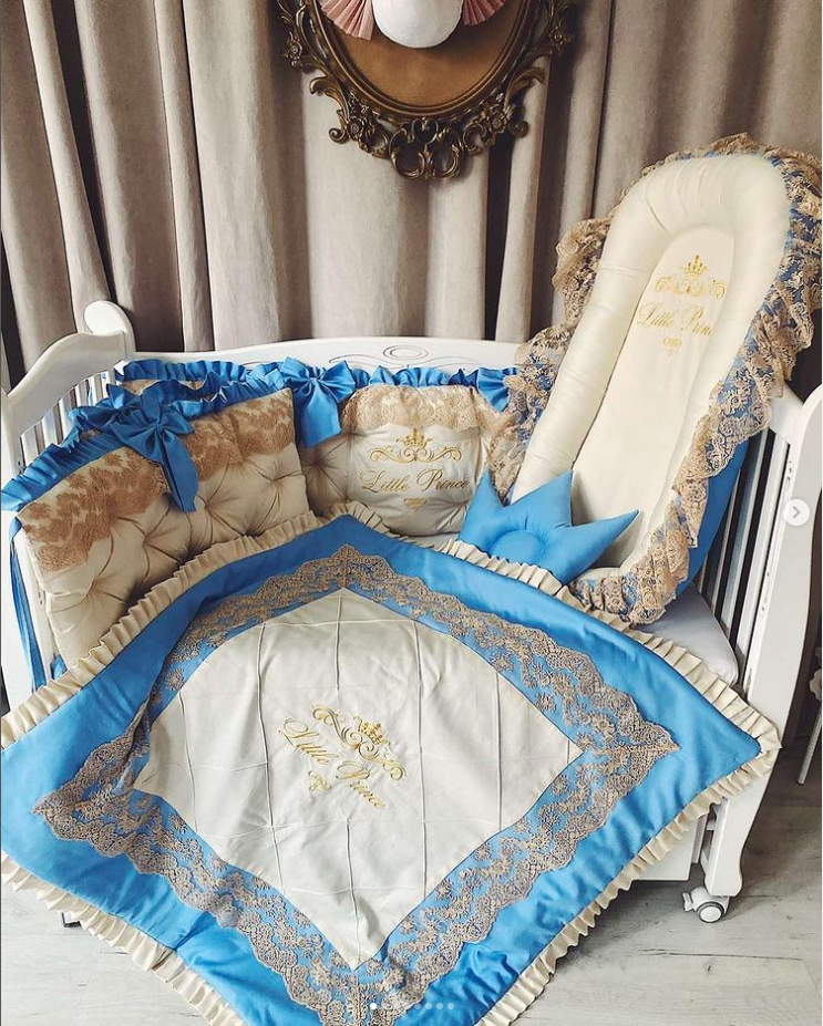 Babybett komplett Set für Mädchen mit Spitze beinhaltet: