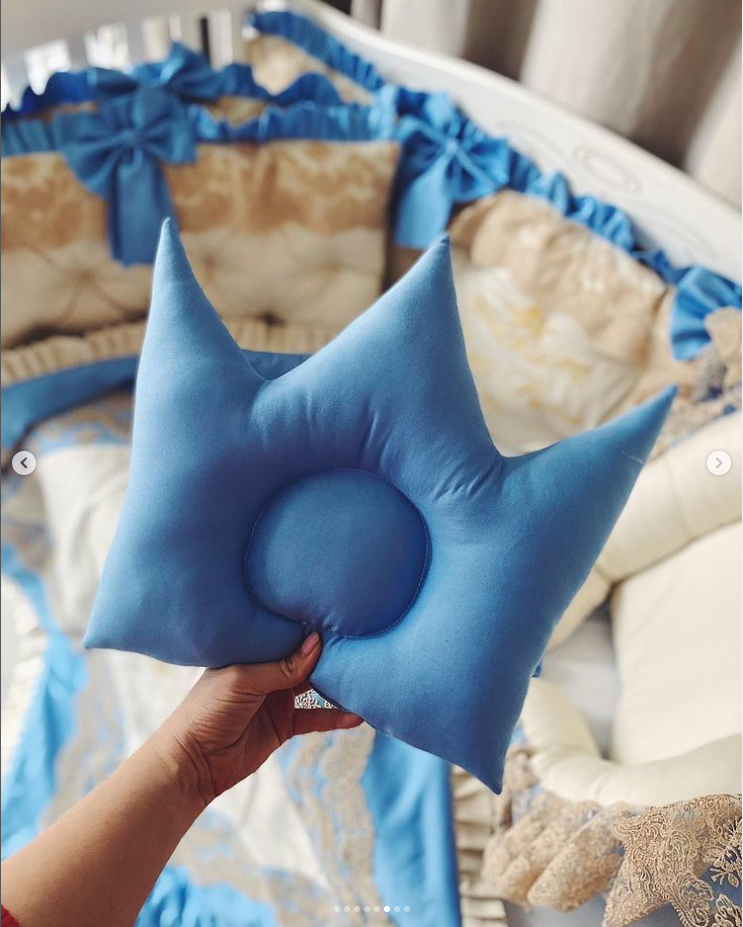 - Bettumrandung für 3 Bettseiten (für 2 kürzere Seiten und eine lange Seite) aus Satinbaumwolle mit Spitze und Schleifen. Insgesamt 8 Kissen ca. 60cm x 30 cm