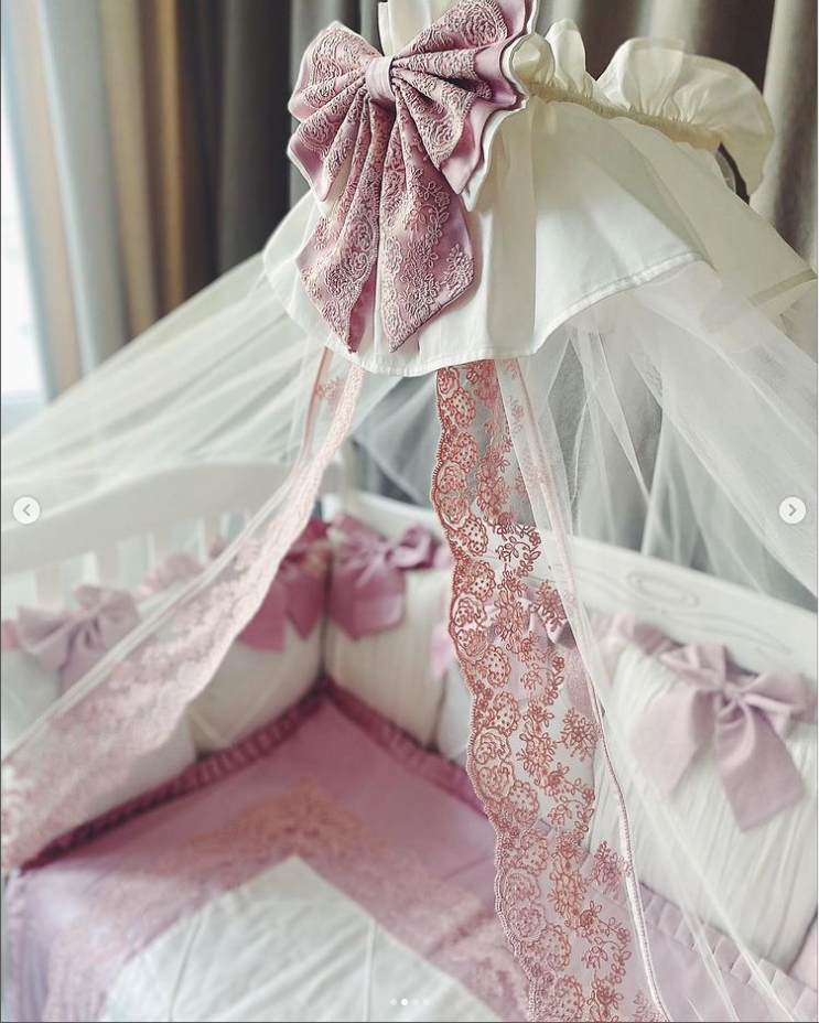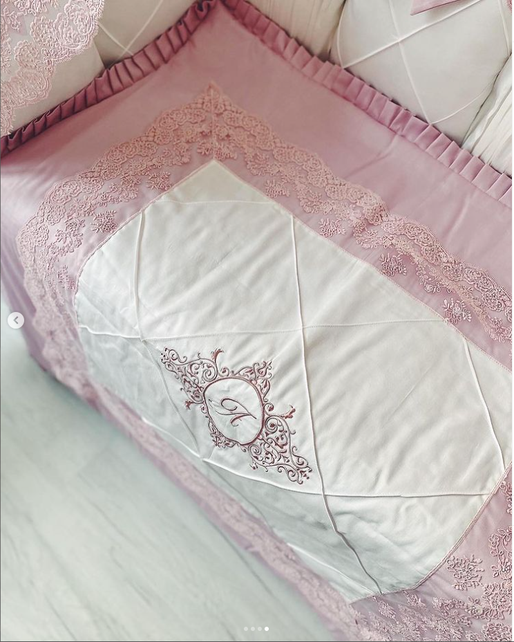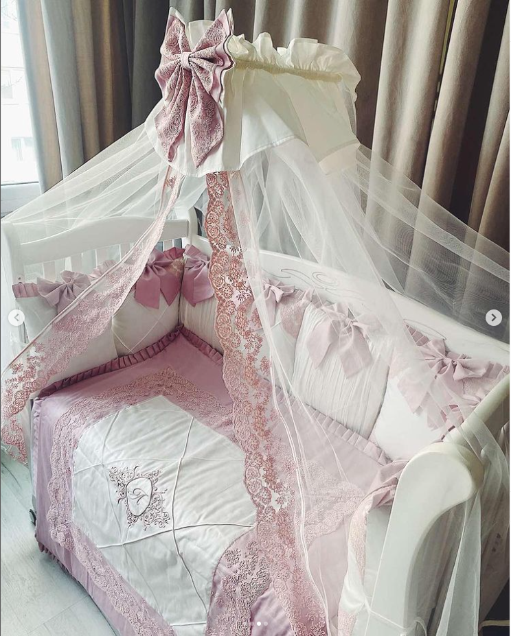 Babybett komplett Set für Mädchen mit Spitze beinhaltet: