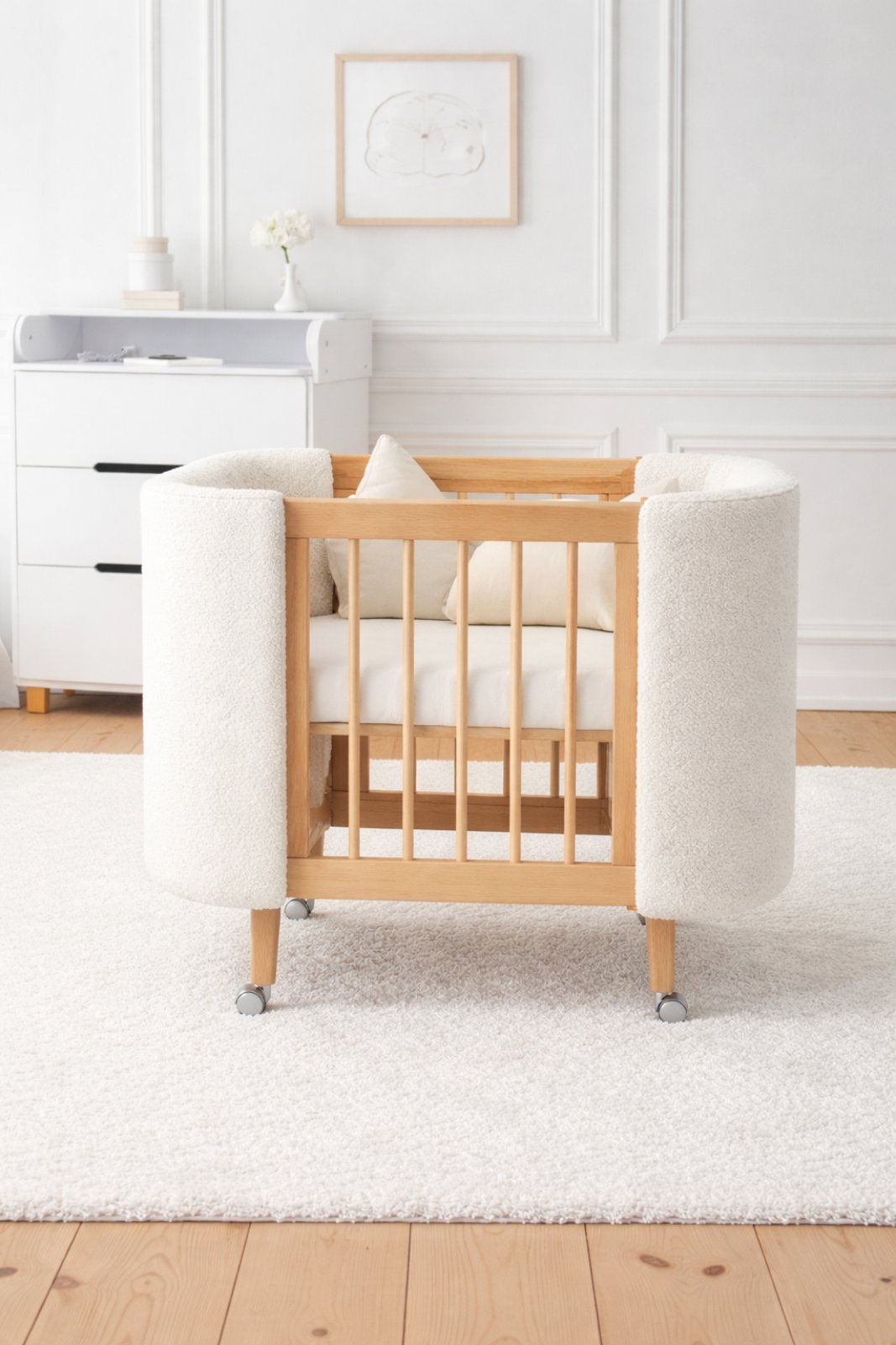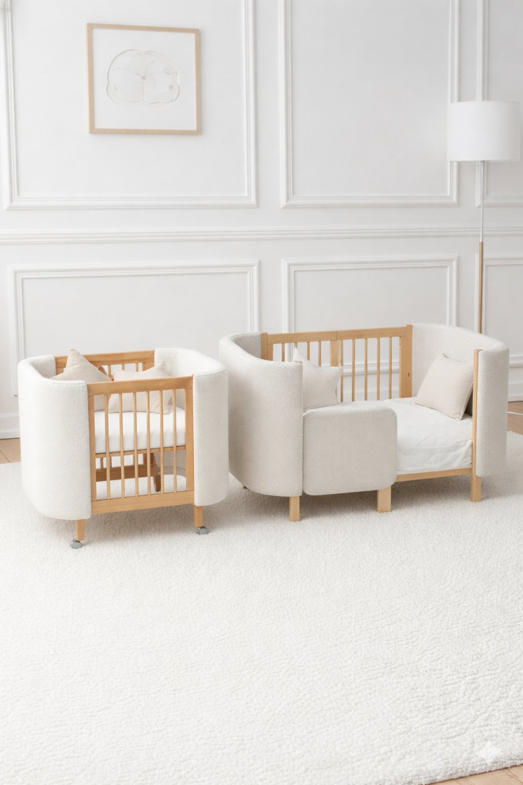 CATANIS mitwachsendes Babybett aus Bouclé Naturweiß