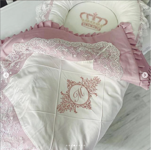 /    /  Baby Bettdecke  /  Baby Bettdecke mit Spitze und Initiale