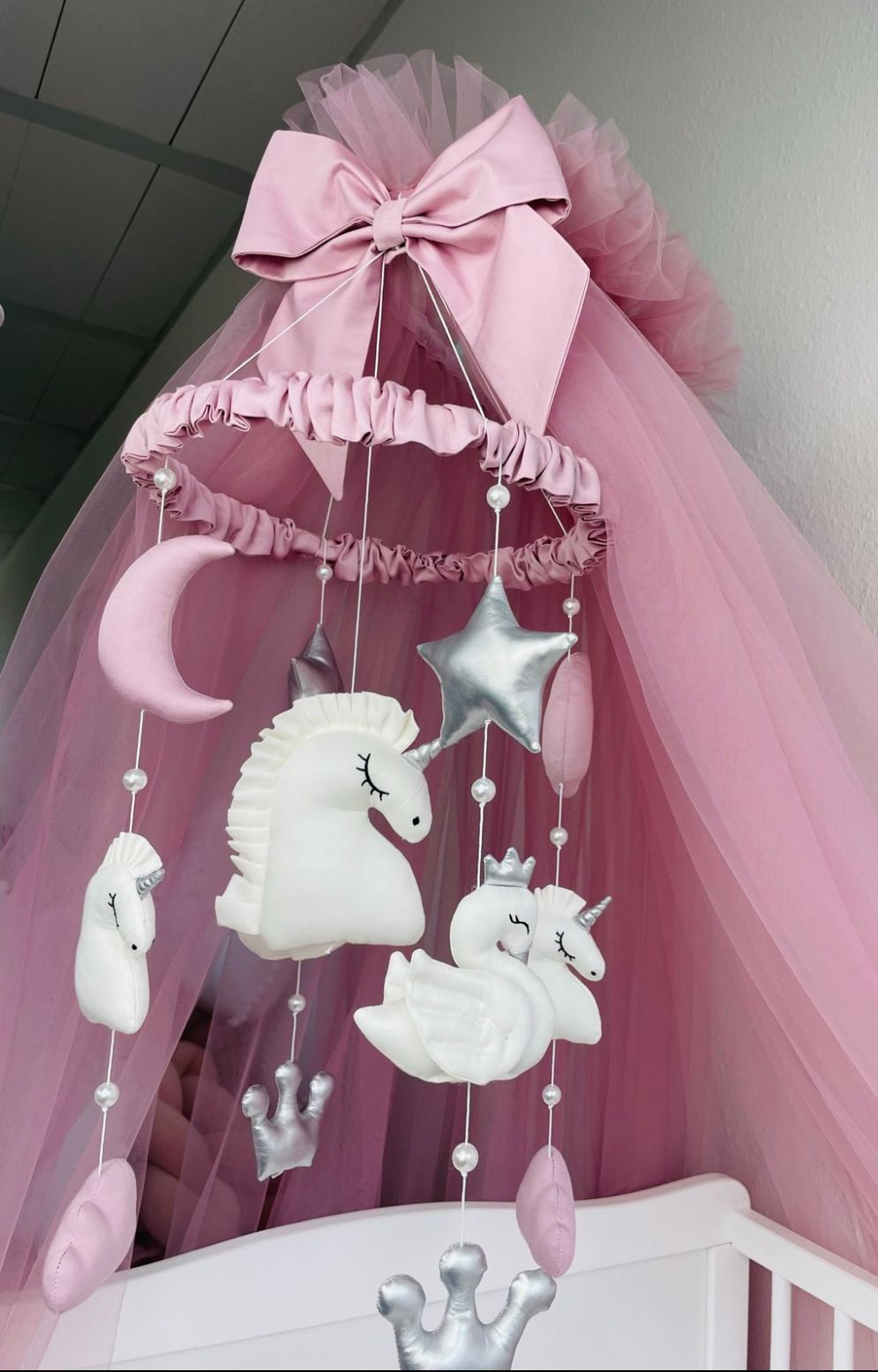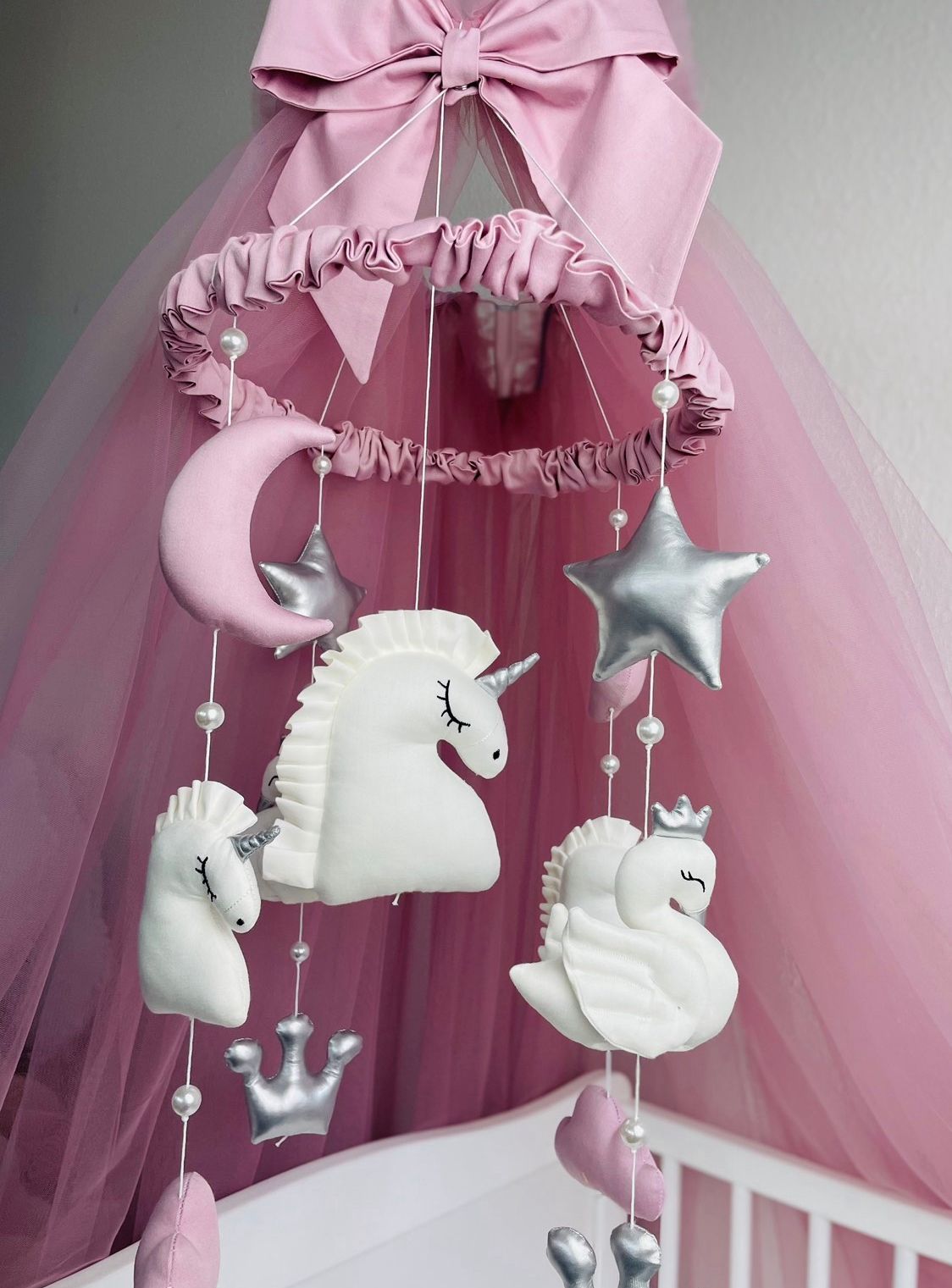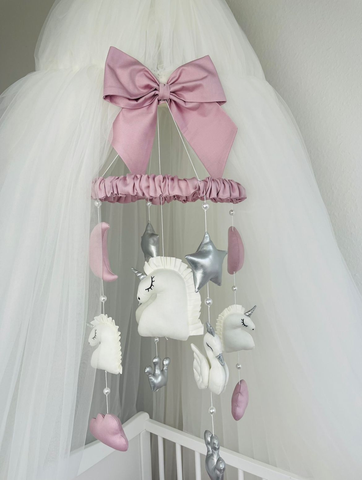 Baby Mobile Rosa/Weiß/Grau mit Bär