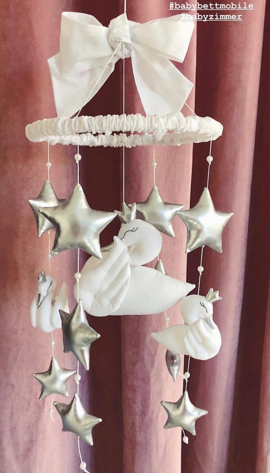 Baby Mobile Rosa/Weiß/Grau mit Bär
