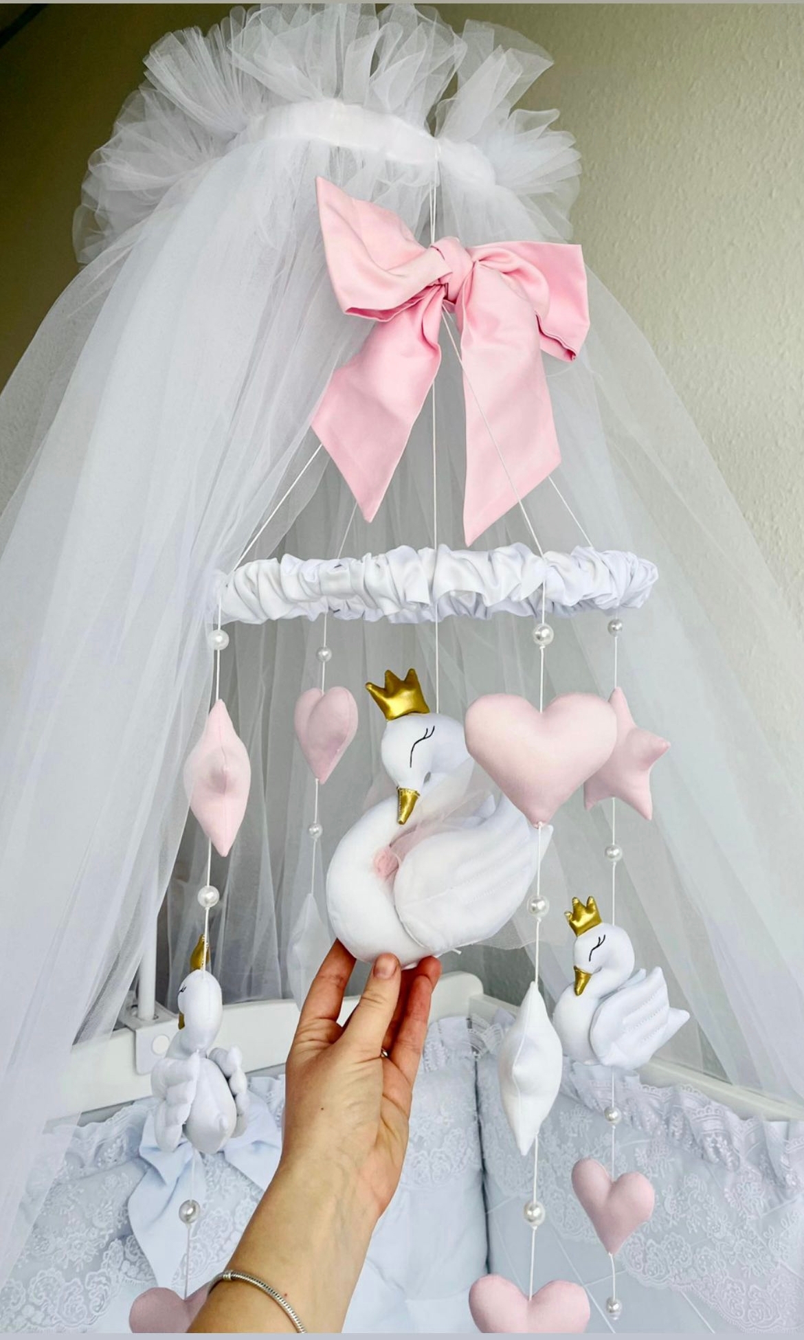 Baby Mobile mit Einhorn Weis/Gold/Altrosa