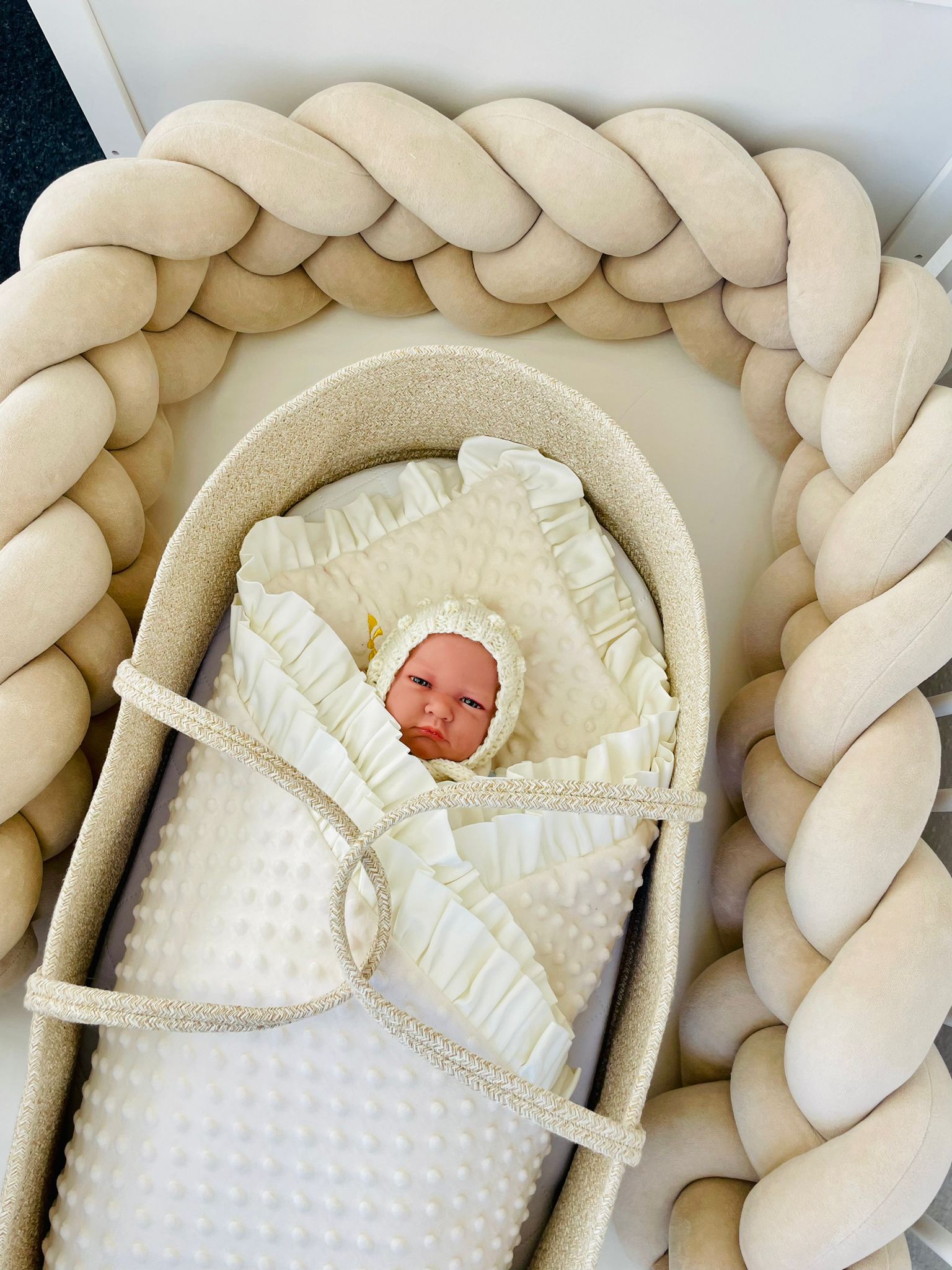 Bettschlange geflochten Weiß / Grau 4 Strähnen x 2,4m