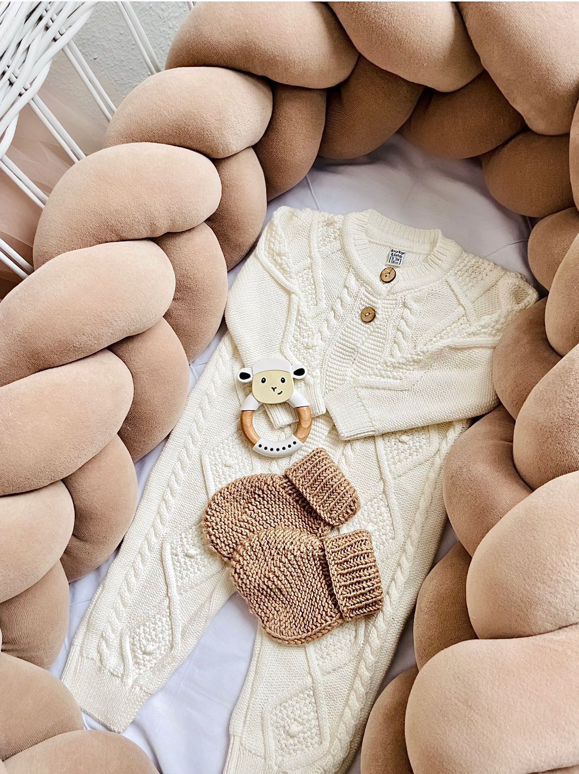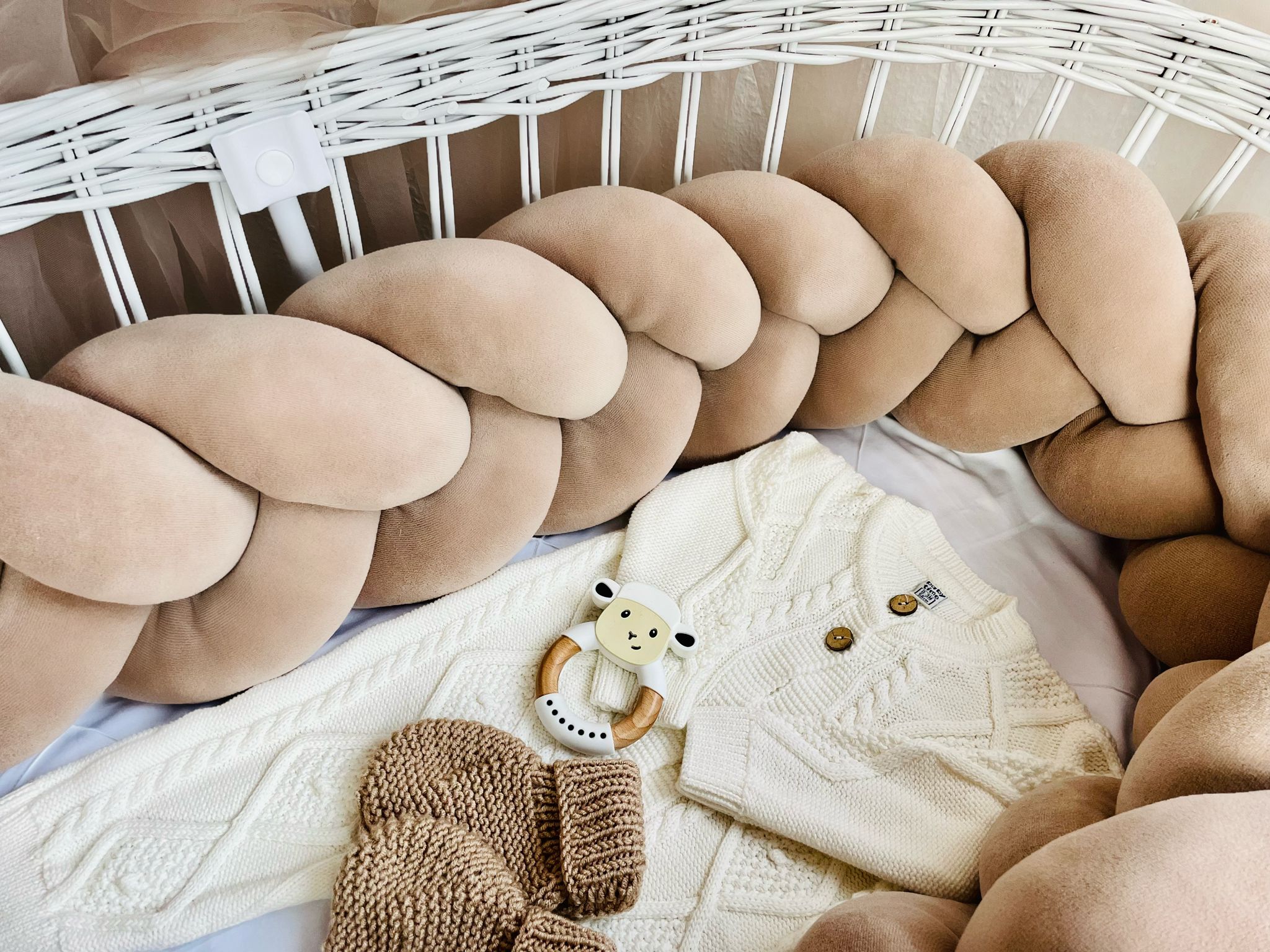 Bettschlange geflochten Weiß / Grau 4 Strähnen x 2,4m