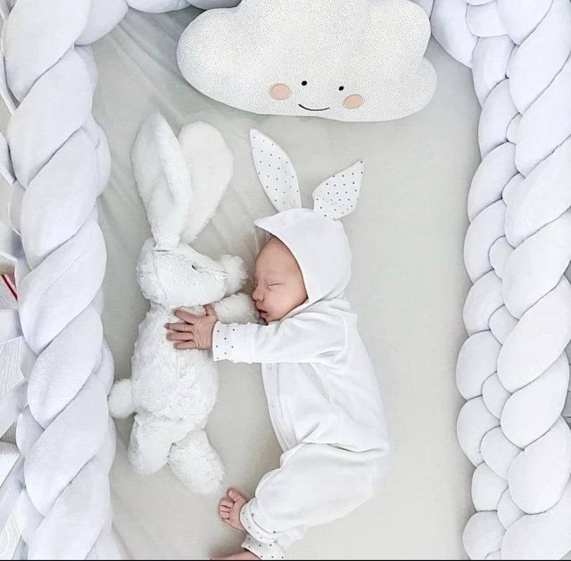 Bettschlange geflochten Weiß / Grau 4 Strähnen x 2,4m