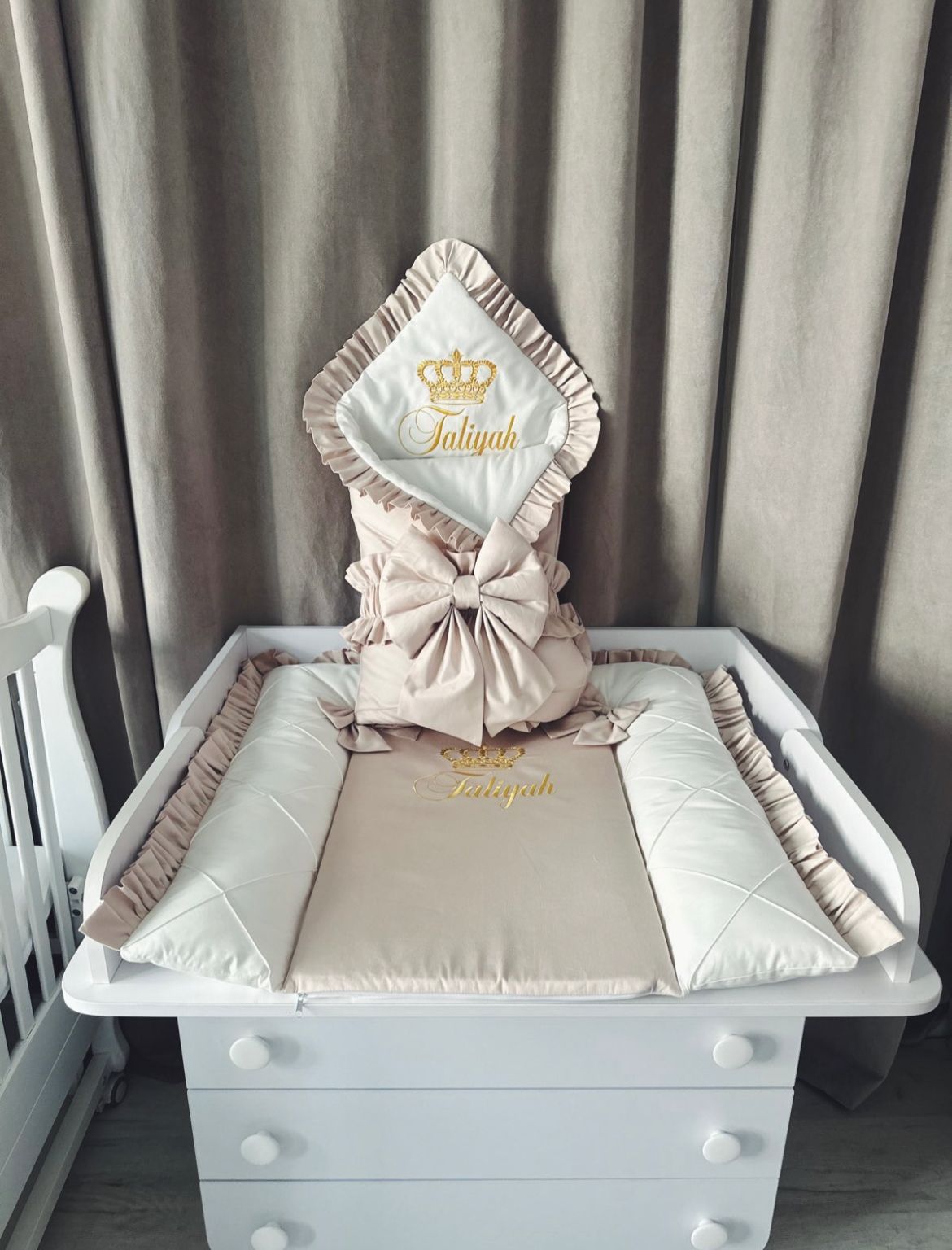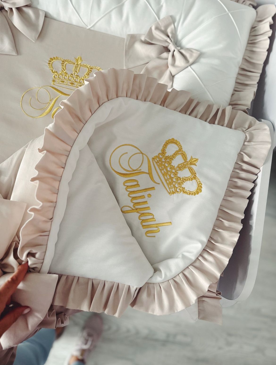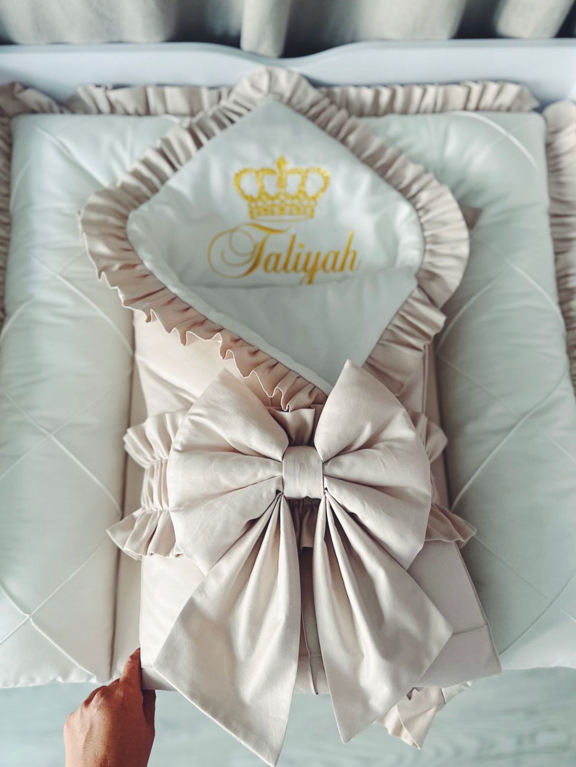 Standart Babybettdecke Größen sind 100 x 100cm mit Band und Schleife