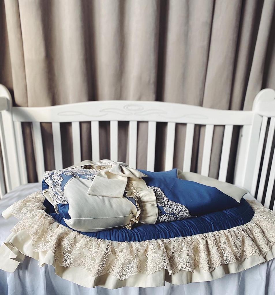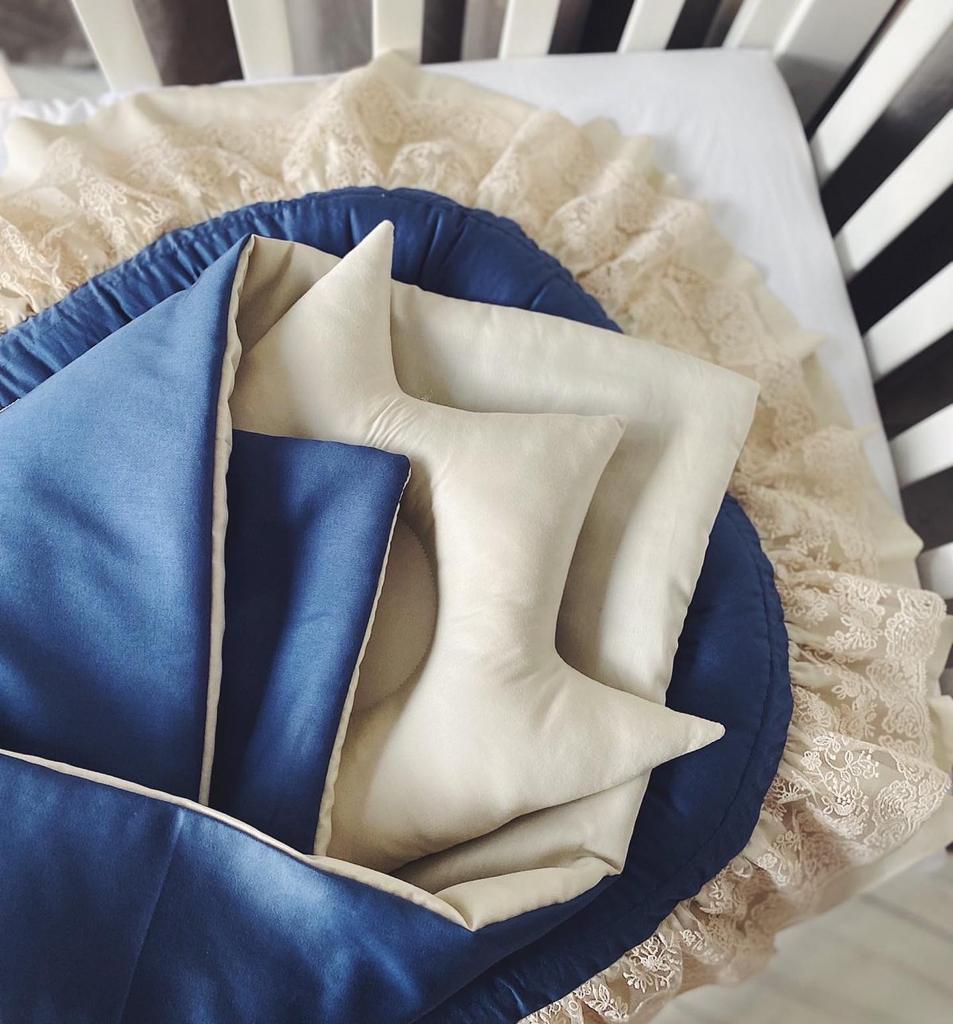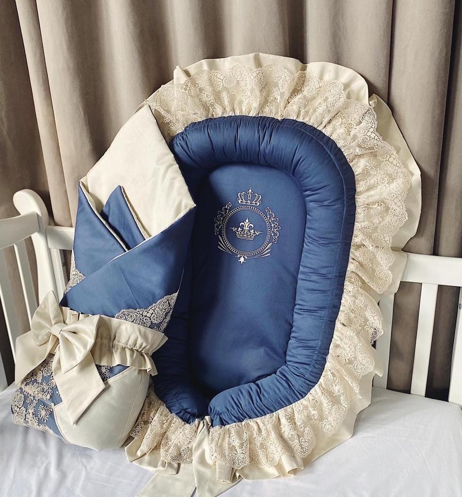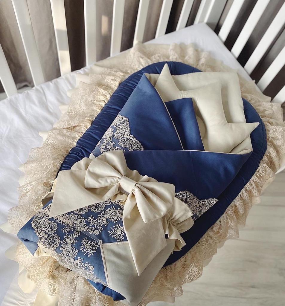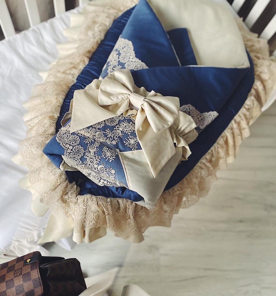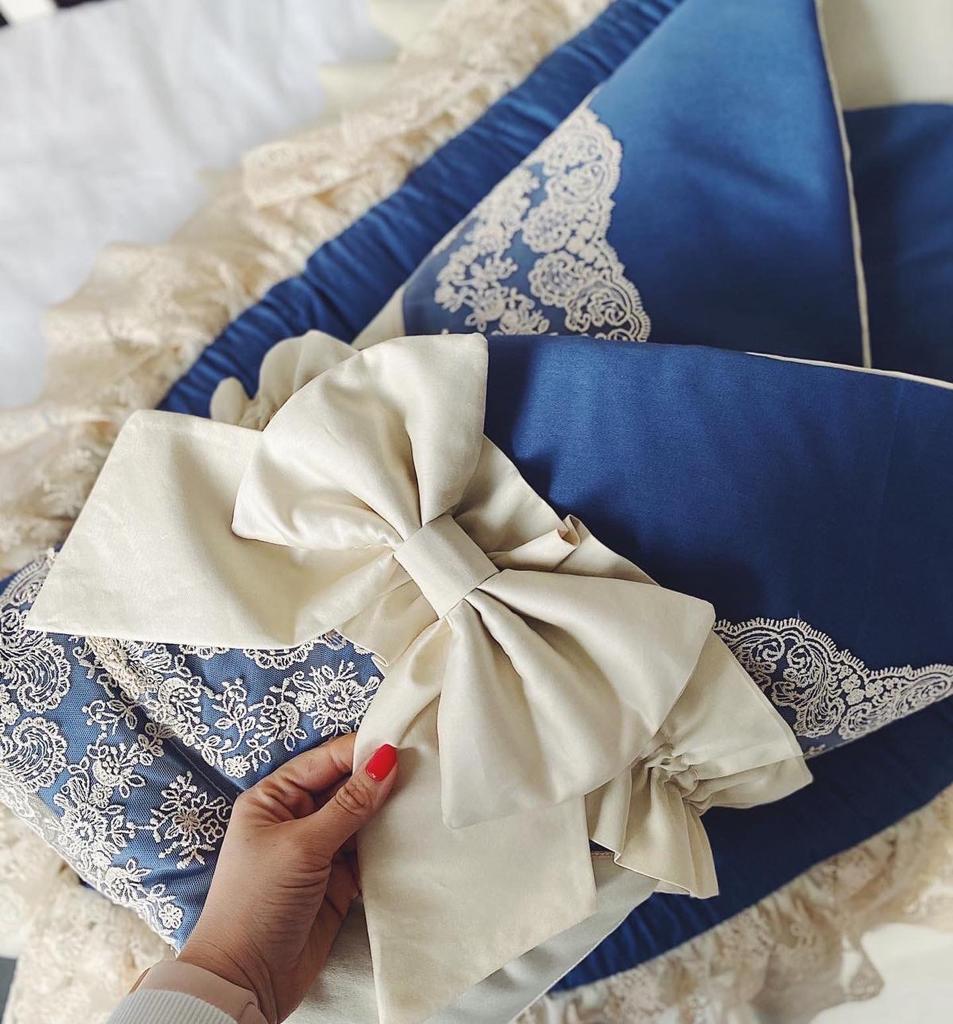 1 x Einschlagdecke Royal Blue/Naturweiß mit Band und Schleife