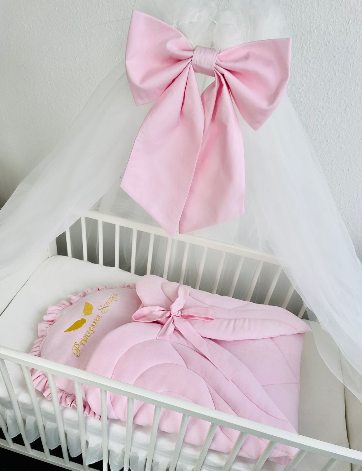 Standart Babybettdecke Größen sind 100 x 100cm mit Band und Schleife