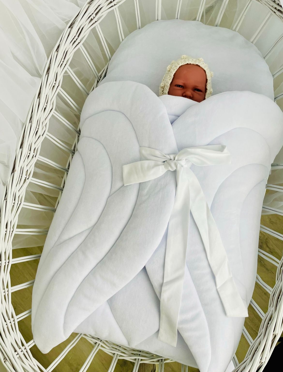 /    /  Einschlagdecke  /  Engelsflügel aus Velours in Weis
