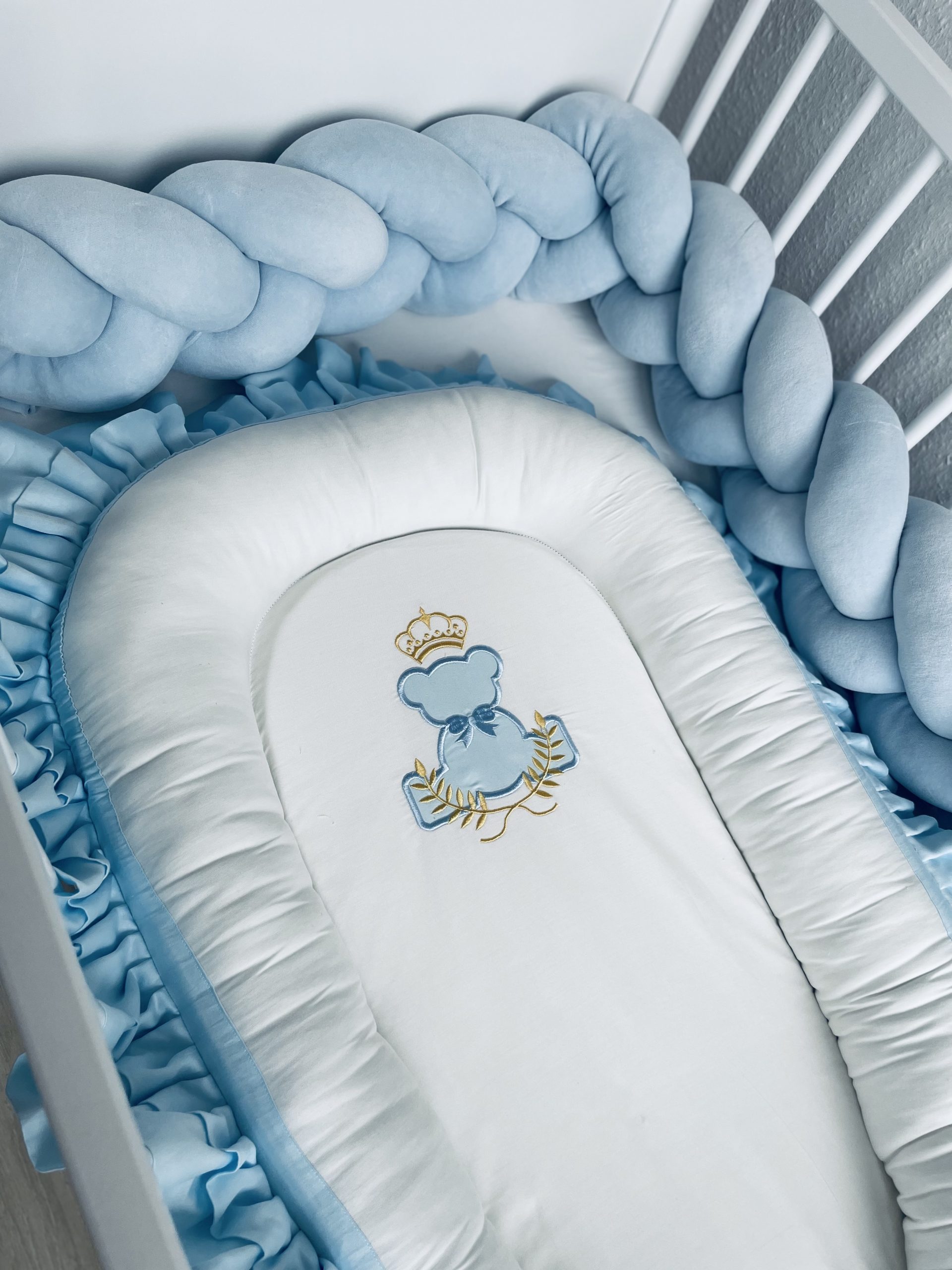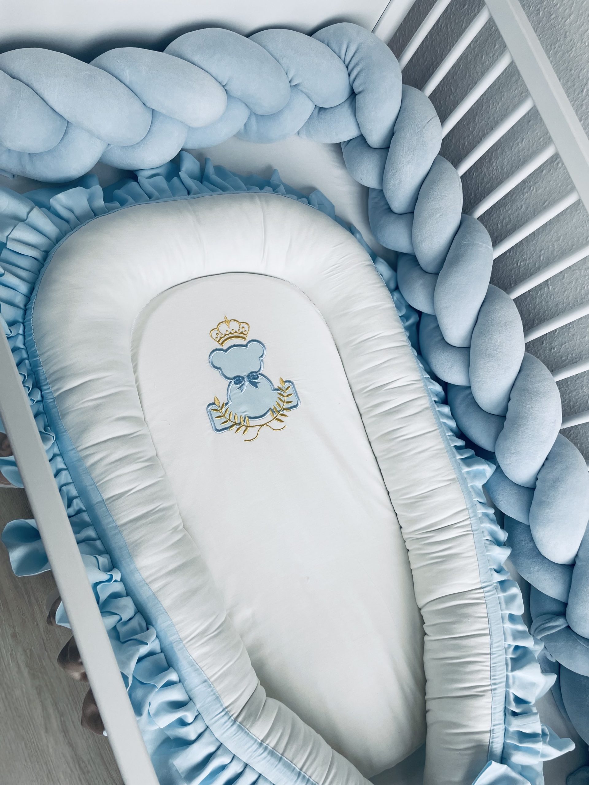 Babynest “Amelie” mit 2 Rüschen, Pompons und Spitze