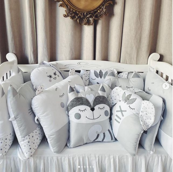 Bettumrandung für 3 Bettseiten besteht aus Kissen
