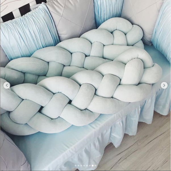 Bettumrandung für 3 Bettseiten besteht aus Kissen